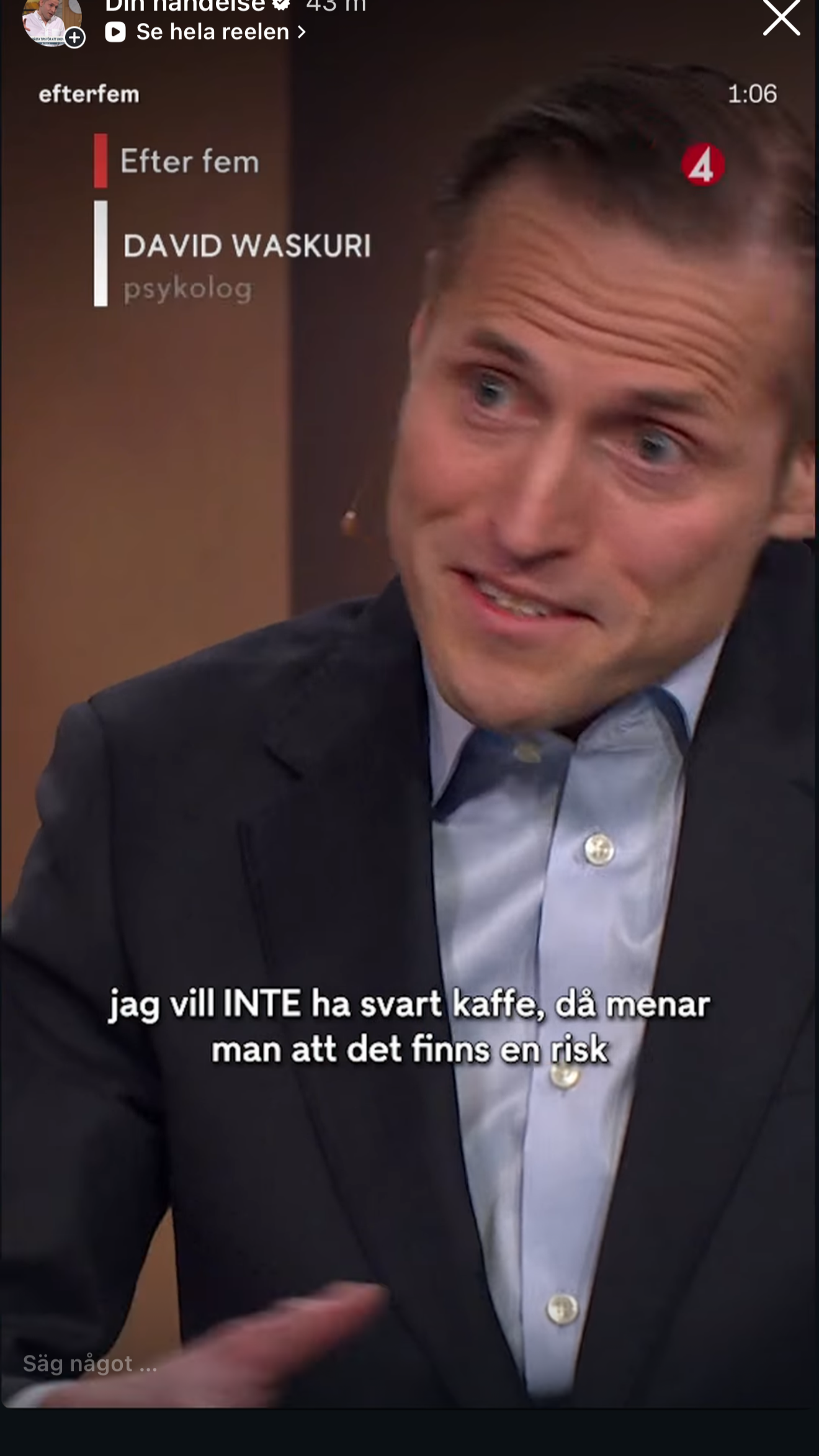 /TV4 - Efter Fem - Psykolog David Waskuri förklarar svart-kaffe-teorin